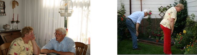 Jan en Lien Teeken in hun tuintje met vijver. Foto: Karel Kulk 21 juli 2009